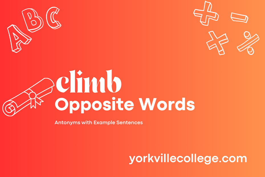 When we discuss the antonyms of climb, we are referring to the actions or movements that are opposite to ascending or scaling a height. These antonyms represent actions that involve descending, moving downwards, or declining in elevation.