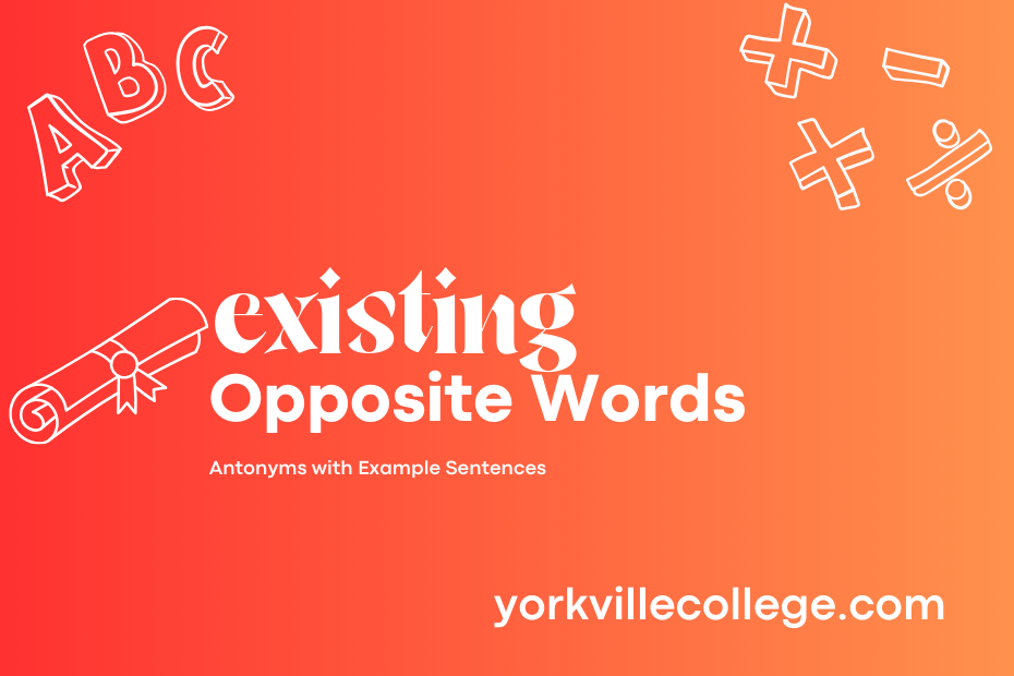 Antonyms of existing are words that express the opposite or contradictory meaning of already established terms. When we encounter antonyms of existing, we are presented with vocabulary that aims to expand our understanding by offering contrasting perspectives. These words allow us to grasp nuances and variations in language that enhance communication and comprehension.