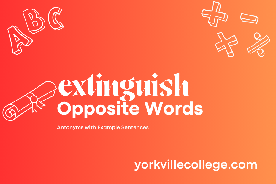 | Antonym | Sentence with Extinguish | Sentence with Antonym |