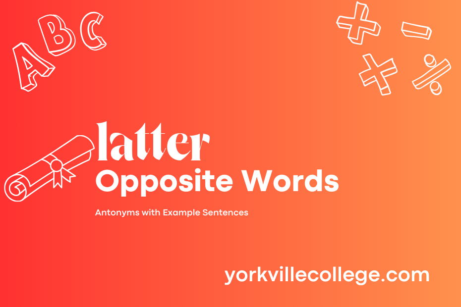 Antonyms of latter, opposite of latter and latter ka opposite word are the same thing. In conclusion, the former option often offers a traditional approach, while the former can sometimes lead to innovative solutions. While the former may provide a sense of security and familiarity, the former tends to encourage experimentation and thinking outside the box.