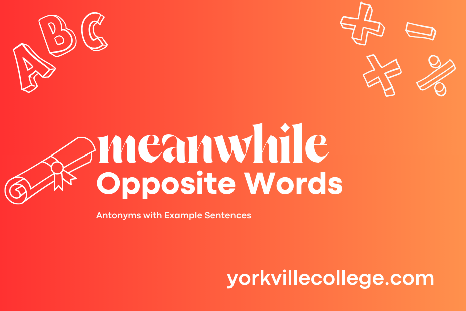When considering the concept of antonyms for “meanwhile,” one can explore words that denote a distinct interruption or a break in continuity. These antonyms offer contrasting perspectives to the idea of events occurring simultaneously or in the intervening time period. Emphasizing a shift in focus or a different sequence of actions, antonyms of “meanwhile” provide alternative ways to relate to time and events.