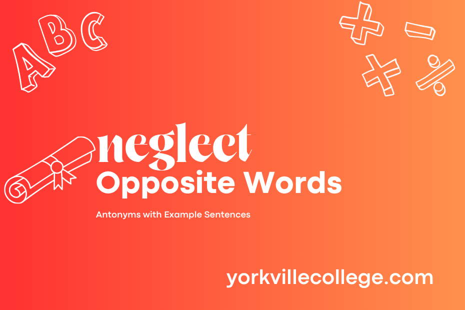 The antonyms of neglect present a spectrum of behaviors and attitudes that counteract the detrimental effects of neglect. They emphasize the significance of active engagement, maintenance, and consideration in fostering positive relationships, personal well-being, and the health of our surroundings. By acknowledging and practicing these antonyms, we can cultivate a more conscientious and compassionate approach to our responsibilities and connections.