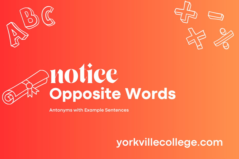 Antonyms of notice, opposite of notice and notice ka opposite word are the same thing. In conclusion, being mindful of the *opposite word of notice* can lead to missed opportunities, overlooked details, and misunderstandings. Without proper attention and awareness, important information or signals can easily go unnoticed, hindering growth and progress. It is essential to cultivate a habit of being attentive and perceptive in various aspects of life to avoid overlooking valuable insights or warning signs.