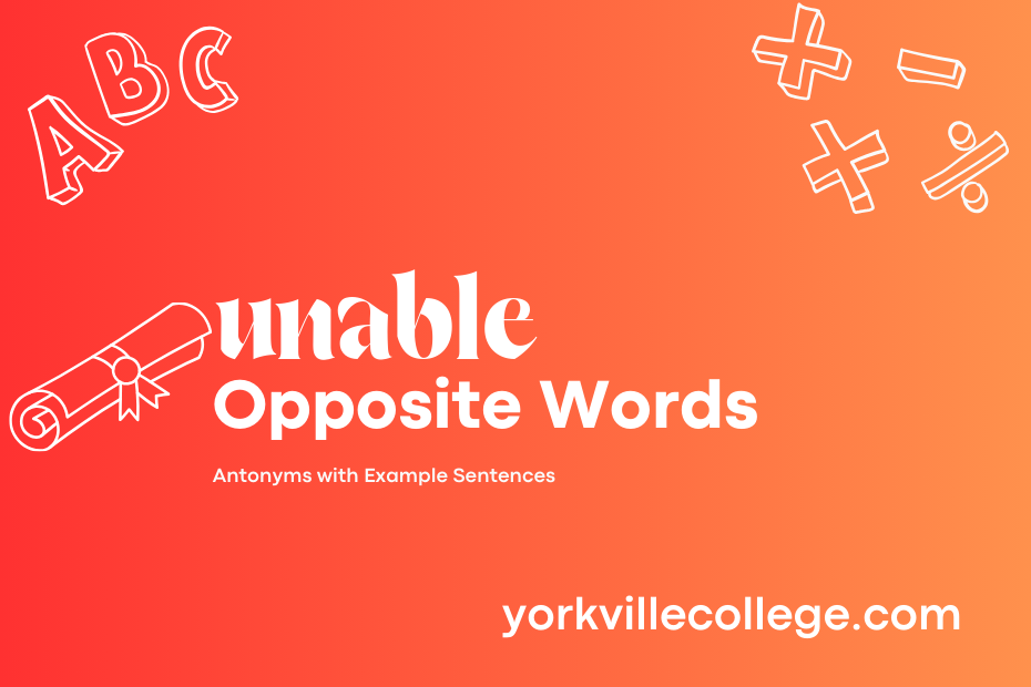 By understanding the antonyms of unable, we can better appreciate the diverse spectrum of possibilities and opportunities available to us. These words highlight the potential for success, achievement, and empowerment in various aspects of our lives by emphasizing our capacity and aptitude to overcome challenges and accomplish our objectives.
